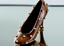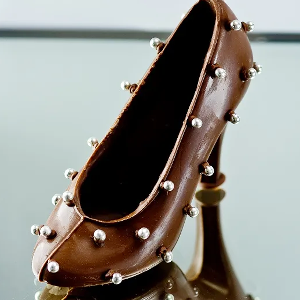 Scarpin totalmente confeccionado de chocolate belga meio amargo.